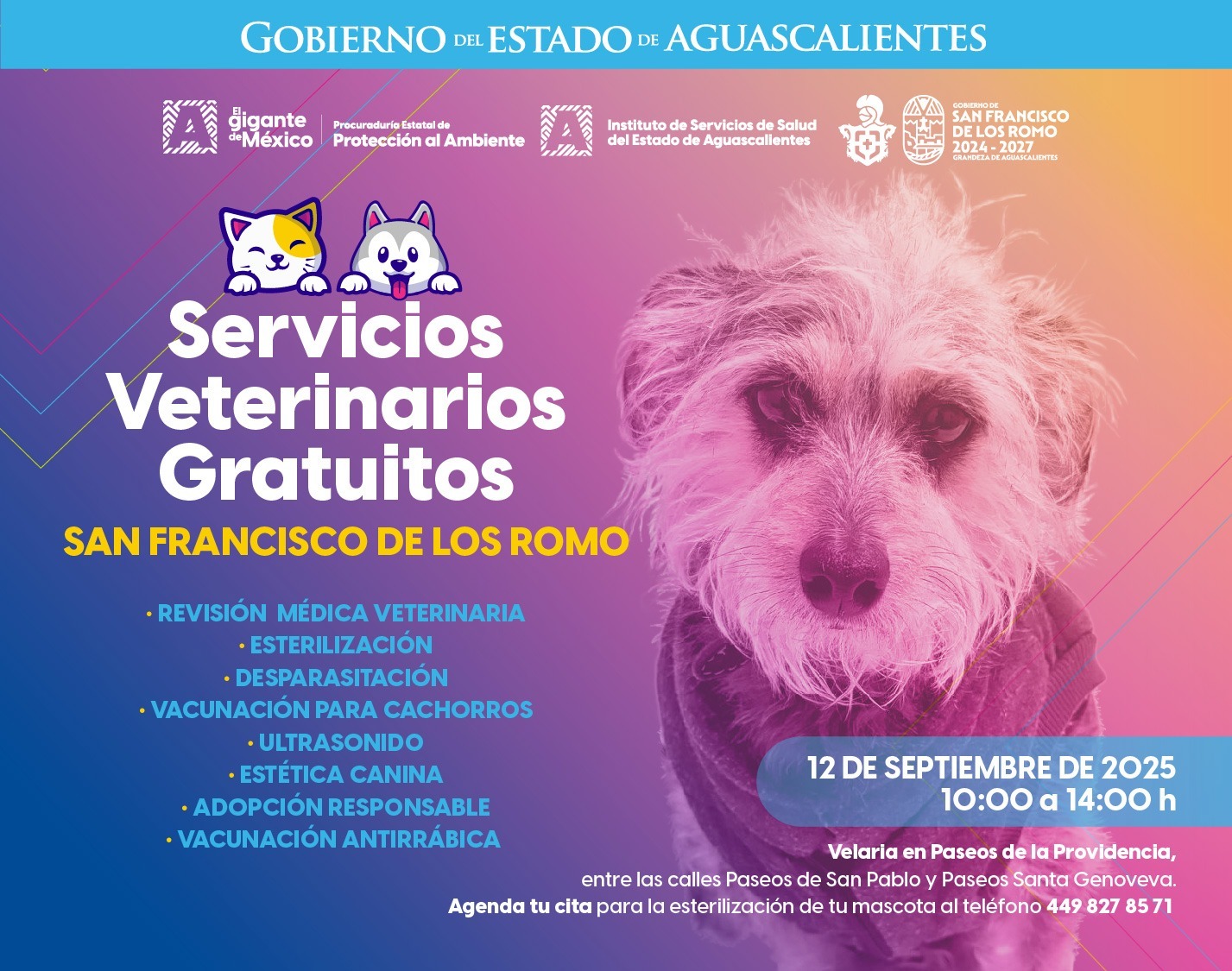 Habrá servicios veterinarios gratuitos: esterilización, vacunas, desparasitación, ultrasonidos, estética y adopciones responsables. 🏡💖